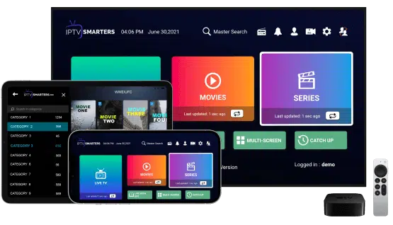 Nuestros servicios de IPTV son accesibles a través de todos los dispositivos de TV inteligente (Samsung, Sony, LG…), todos los dispositivos Android (teléfonos y Tabletas), Apple TV, iPhone, iPAD, MAC, Google Chromecast, ROKU, computadoras y Fire Stick de AMAZON.