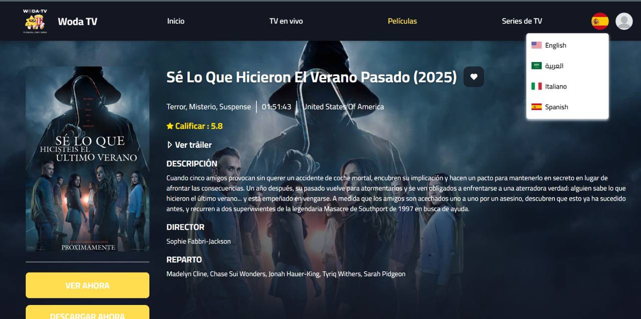 WODA-TV IBO (ADS INGLES) muestra fecha de vencimiento, tiene un diseño diferente para disfrutar TV en vivo y anuncios en inglés de películas y series recomendadas.